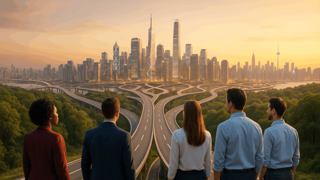 Um diese Entwicklung greifbarer zu machen, haben wir zwei Zukunftsszenarien als kurze Hörgeschichten für Sie vorbereitet. Sie geben einen Eindruck davon, wie Führung in einer von KI geprägten Arbeitswelt aussehen könnte, einmal in wenigen Jahren und einmal in etwas fernerer Zukunft.